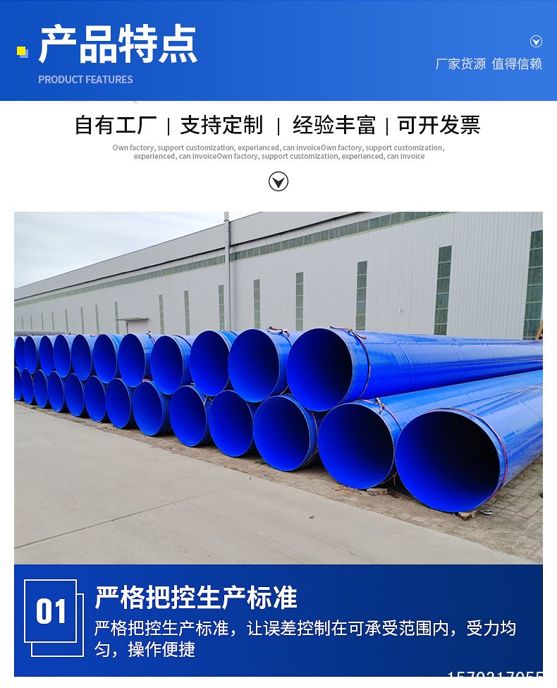 - **涂层厚度**:PE涂层厚度一般为400um-1000um,EP喷涂厚度一般为100um-400um。