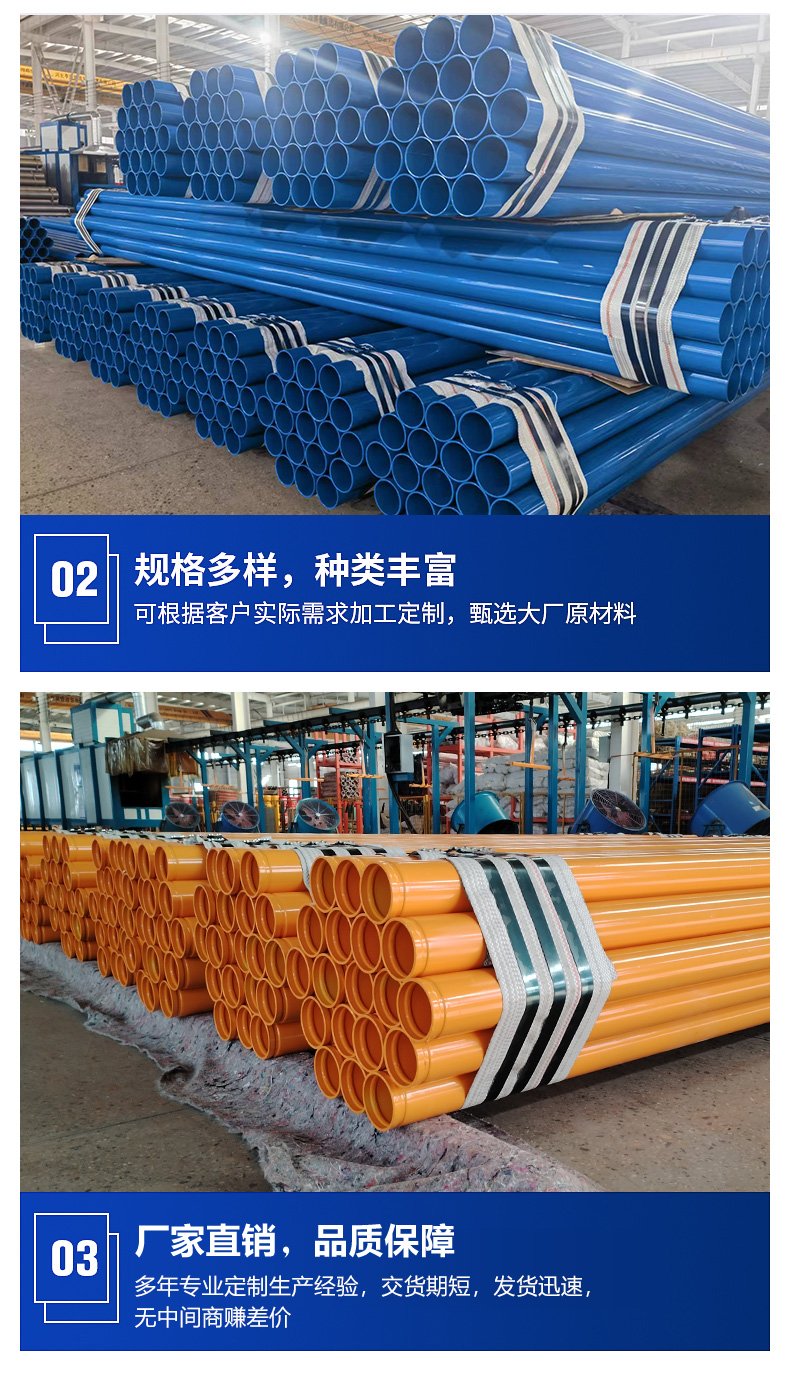 - **消防供水系统**:具有良好的耐腐蚀性和抗压性能,能够在消防灭火时提供稳定可靠的水源,保障消防安全。 - **其他领域**:还可应用于城市给排水工程、矿山矿井的通风管和供排水管、电线电缆的地埋管和过路管等领域。